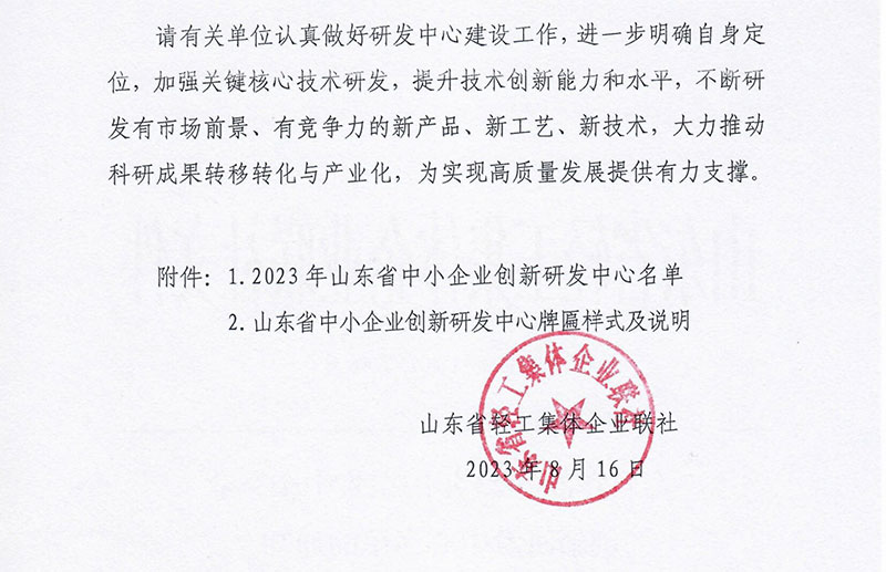Shandong Provincial Innovation and R&D Center for Small and Medium-sized Enterprises in 2023