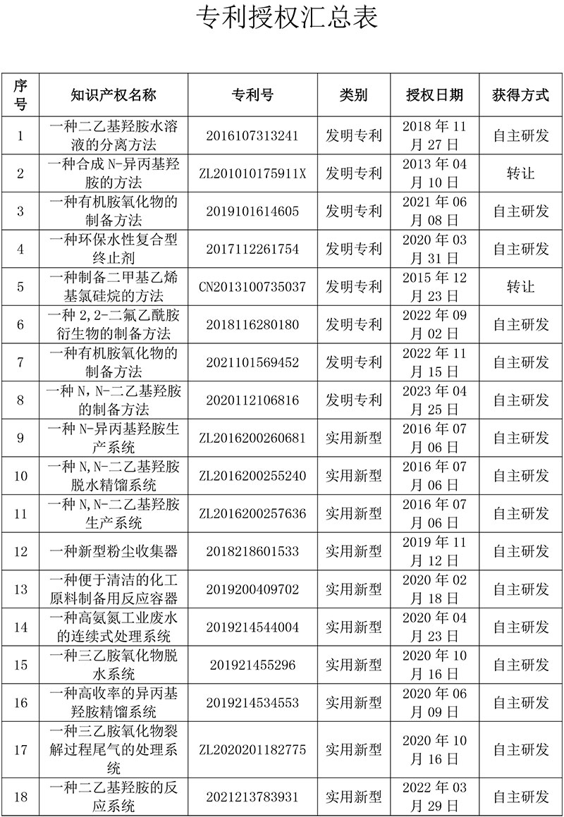 Summary of patent grants