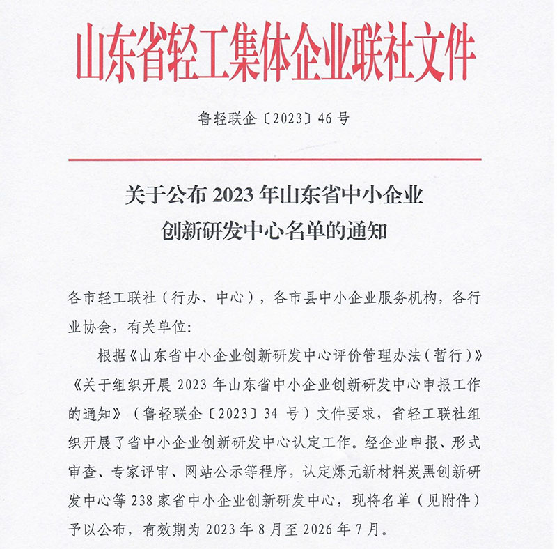 Shandong Provincial Innovation and R&D Center for Small and Medium-sized Enterprises in 2023