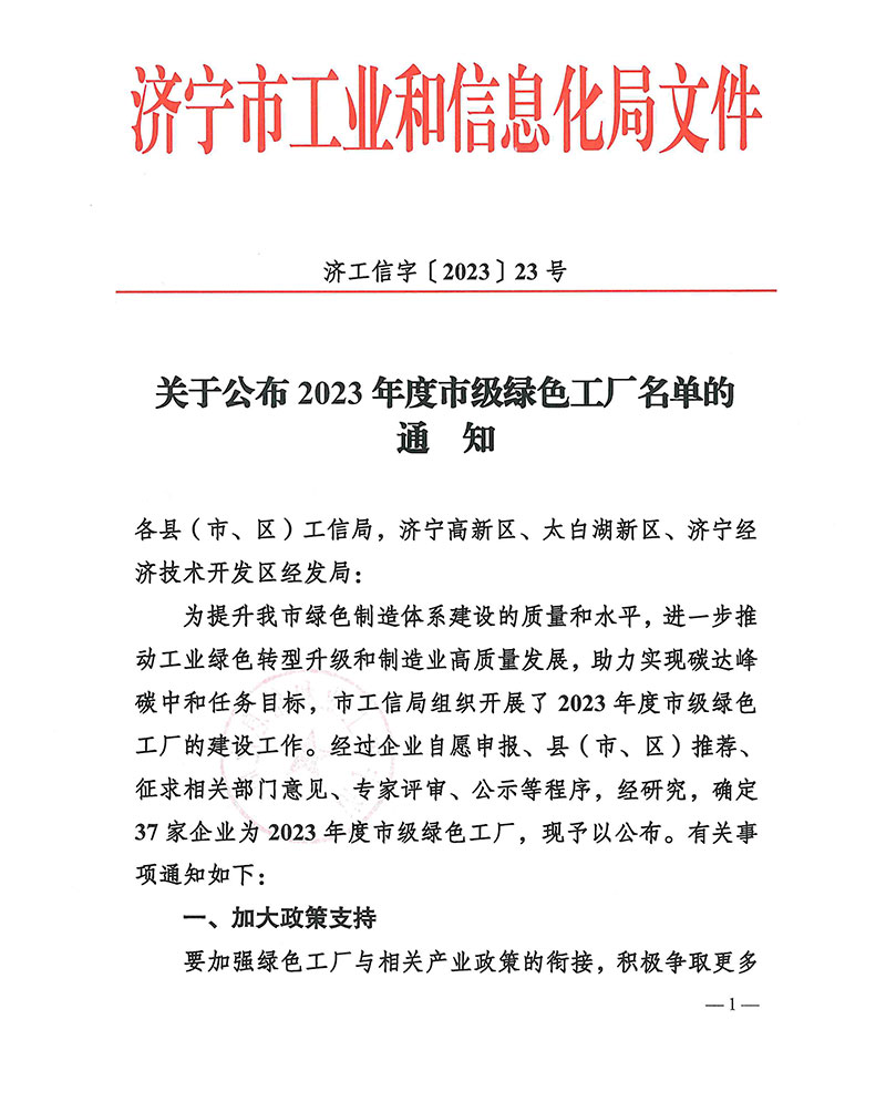 Municipal-level Green Factory of the Year 2023