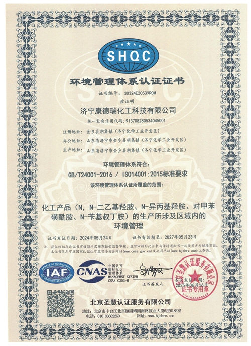 Environmental Management System Certification Certificate